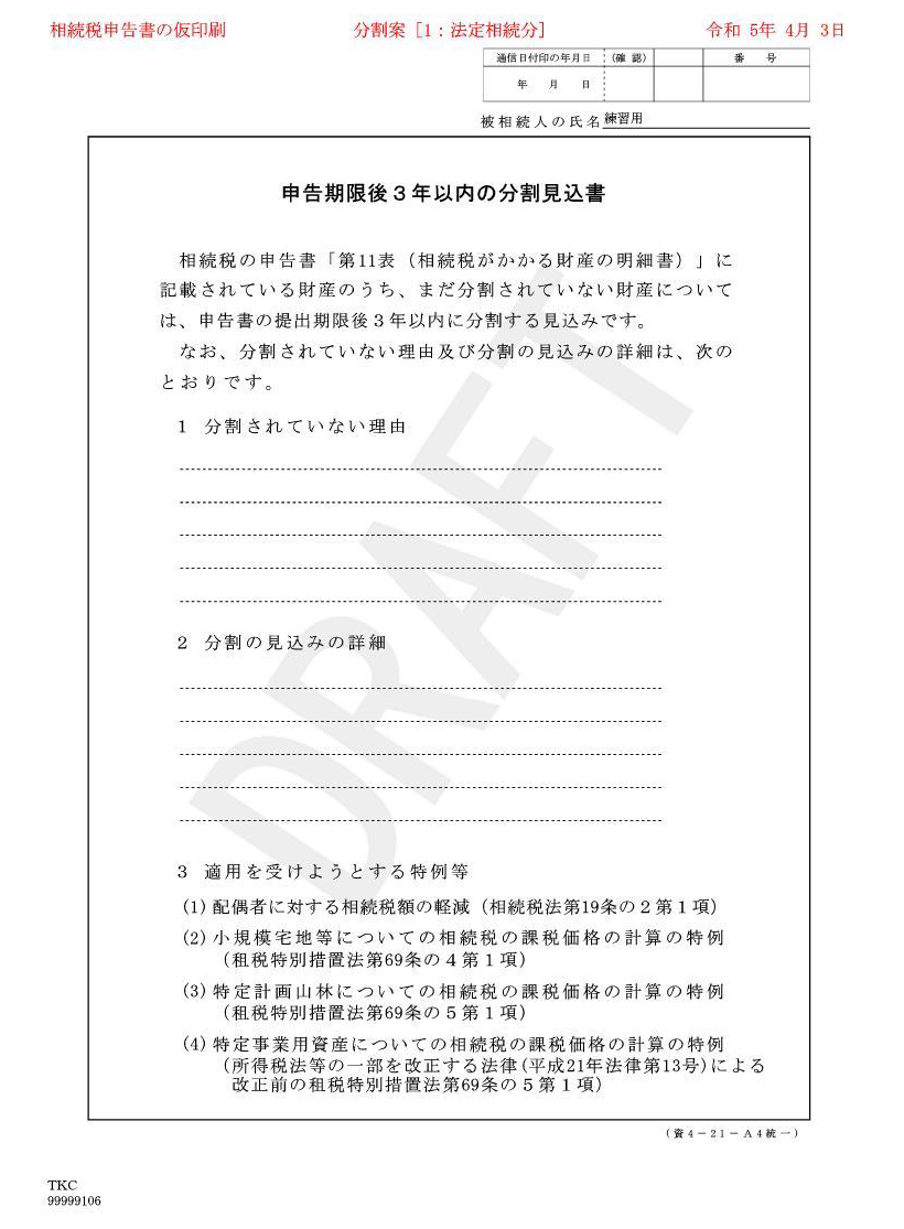 こうした場合は、まず期限内に税務署に法定相続分に基づいて遺産分割をしたと仮定して税額を計算し、申告・納税をします。尚、この段階では配偶者の税額軽減や小規模宅地等の特例といった特例は、適用しない状態で申告します。