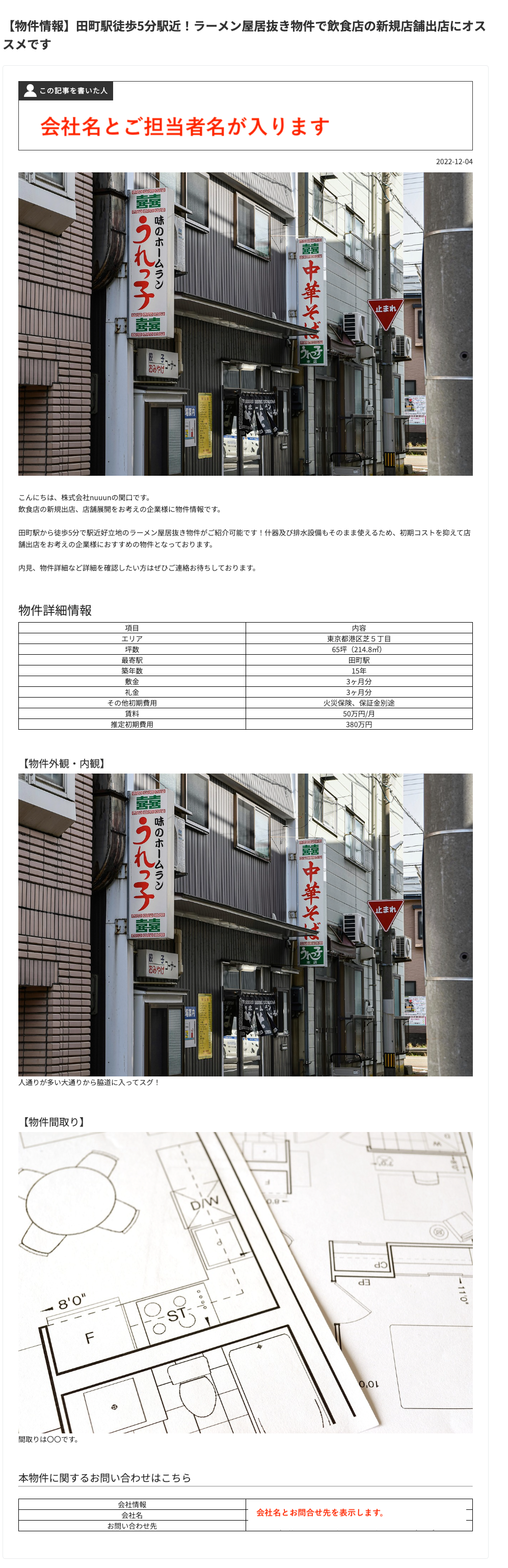 【マニュアル>その他】居抜き物件情報掲載におすすめの記事作成テンプレートその1