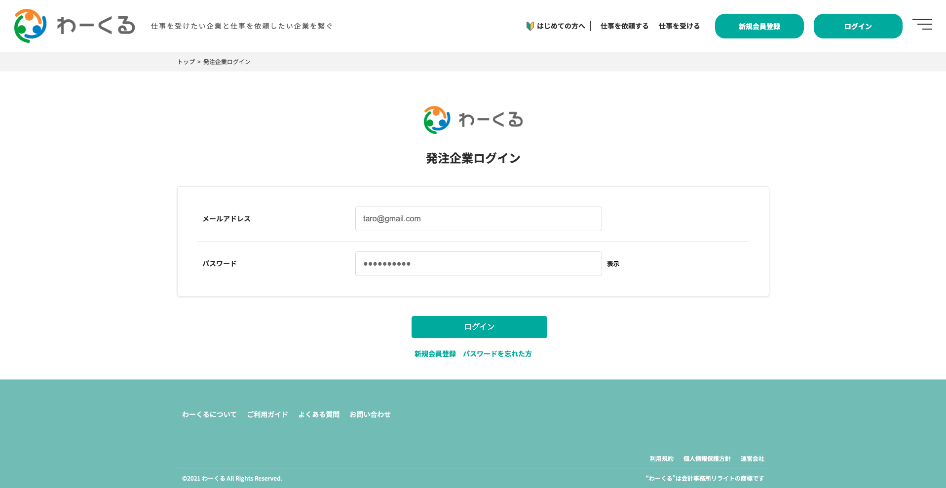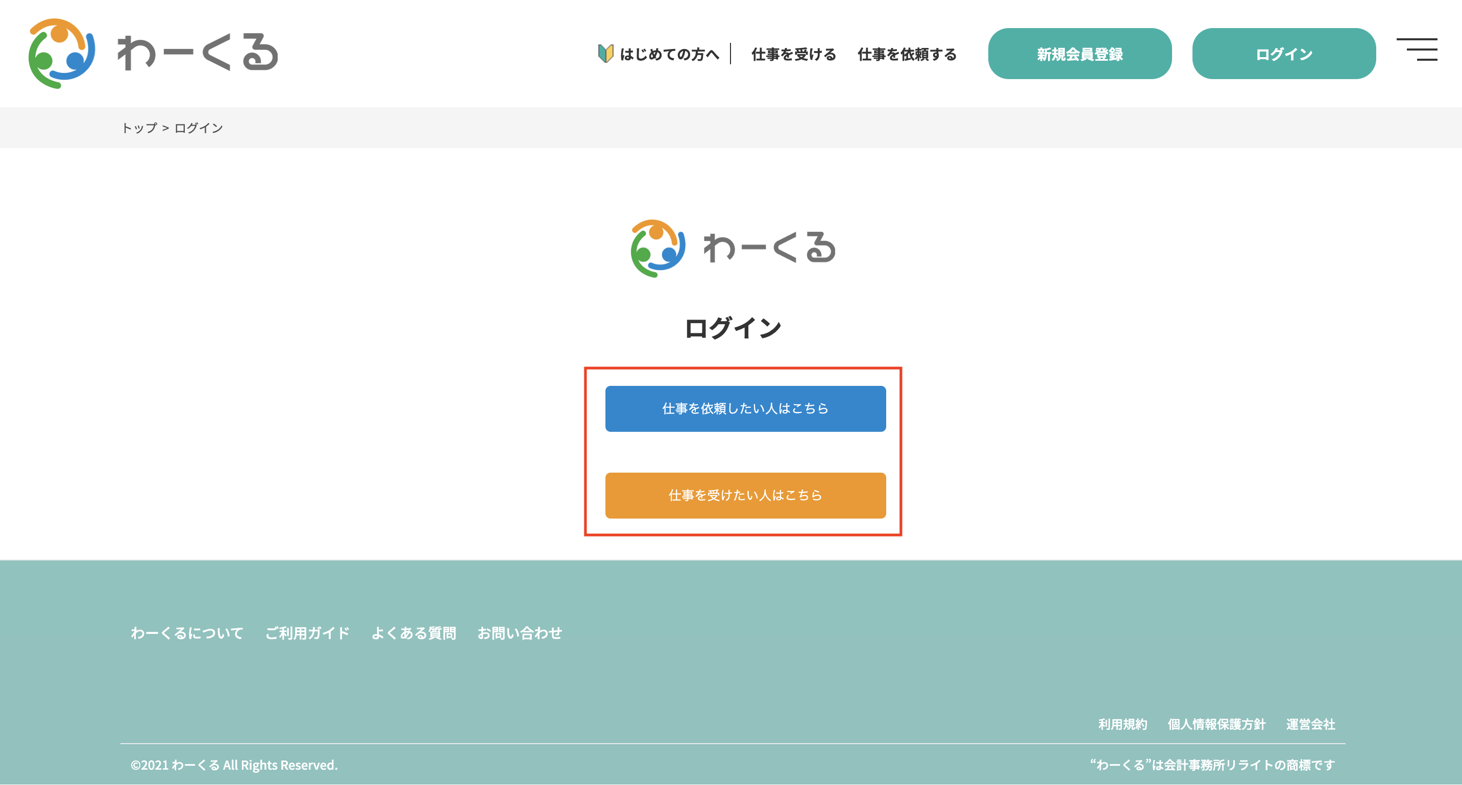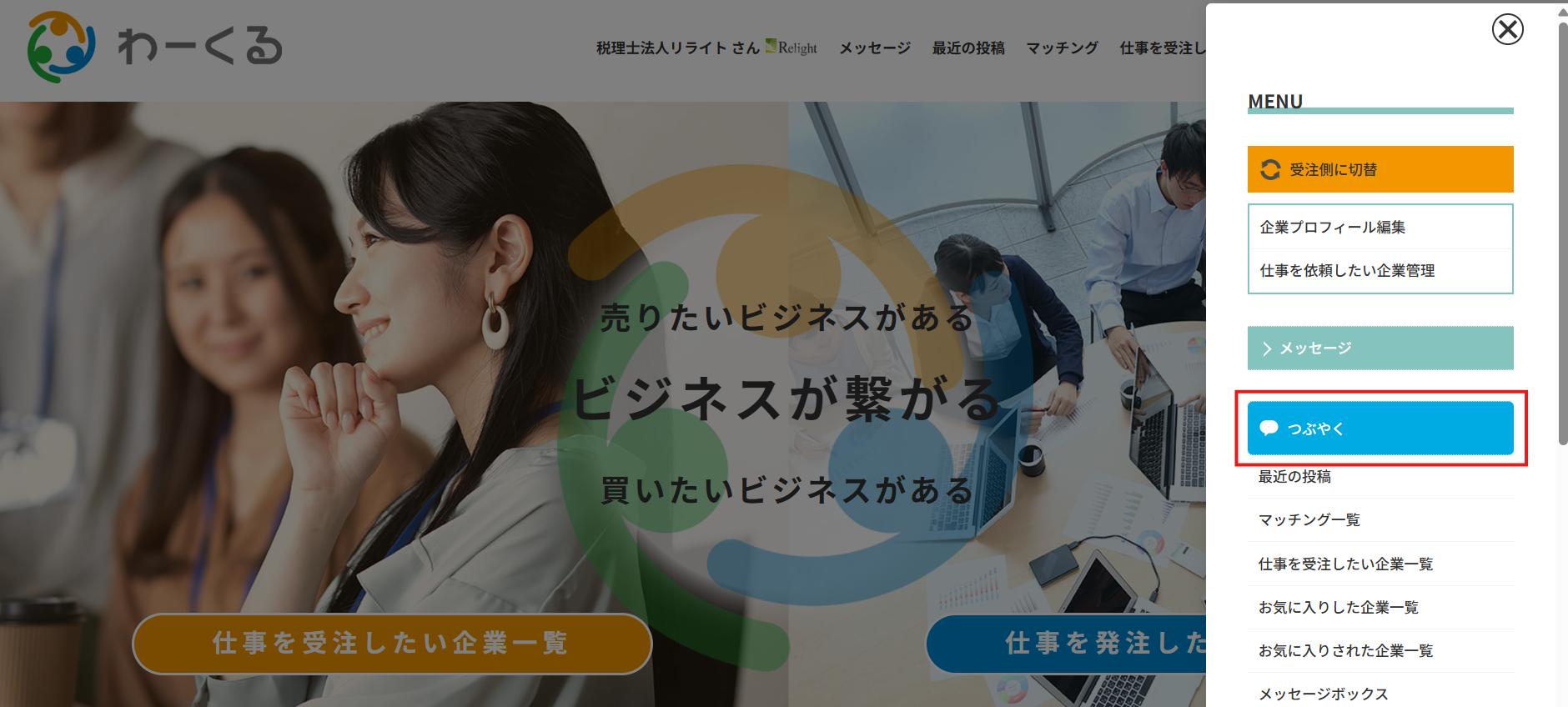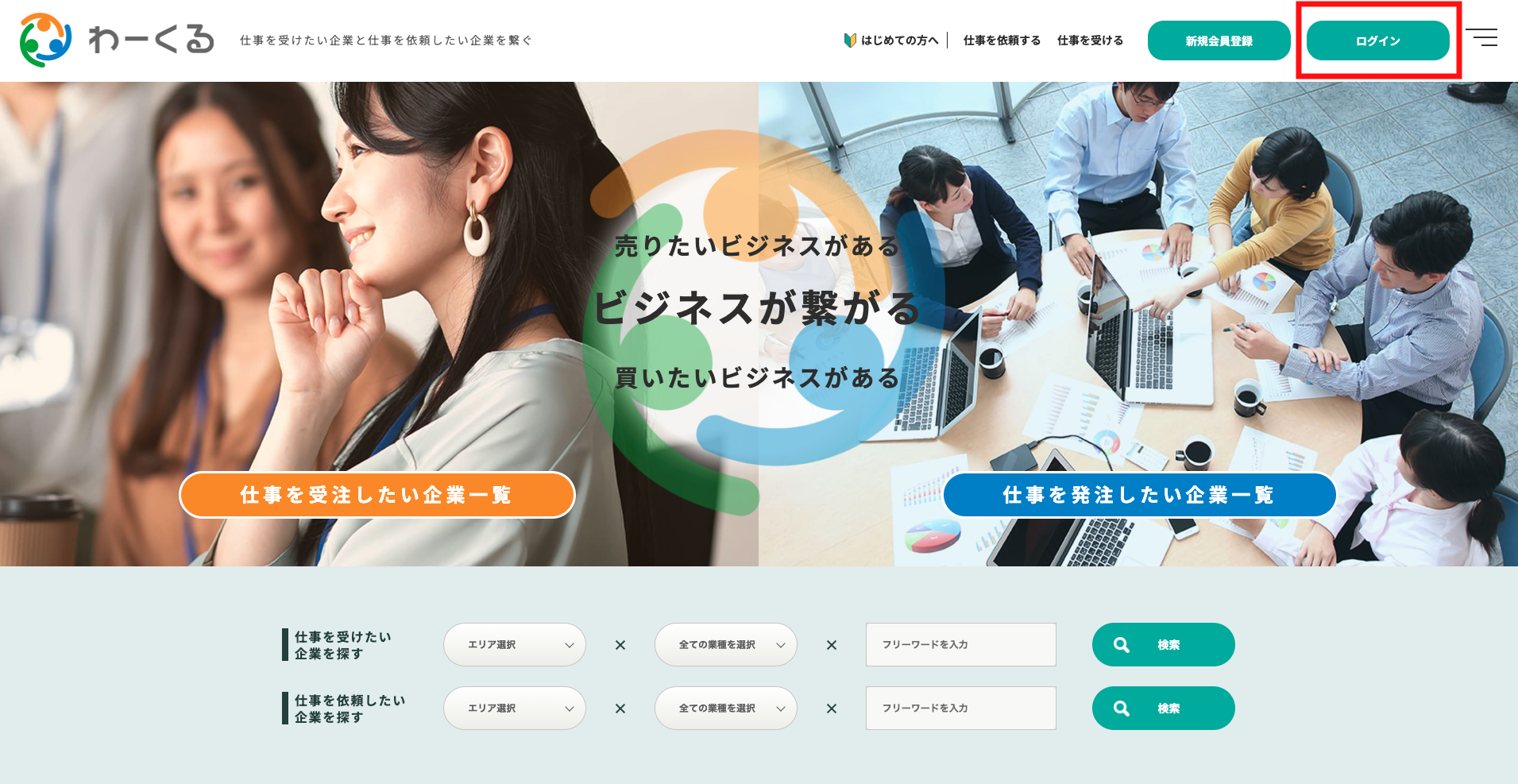 1-3 「仕事を依頼したい企業はこちら」または「仕事を受けたい企業はこちら」をクリック